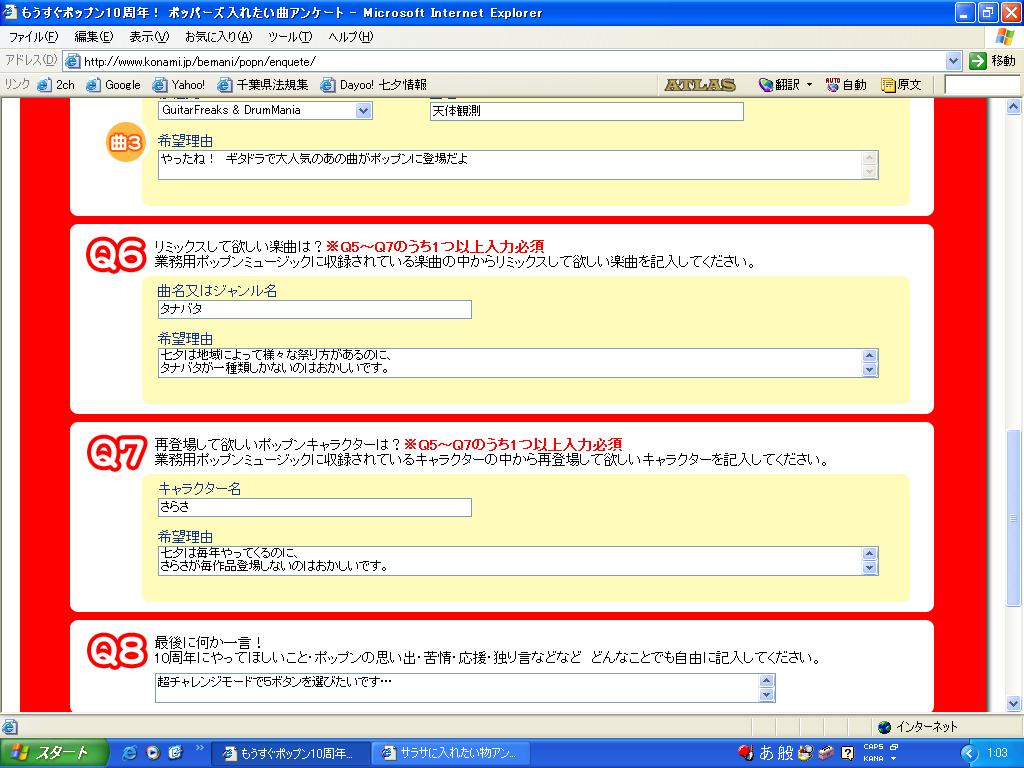 しかしさ。ポッパーズ入れたい曲アンケートの