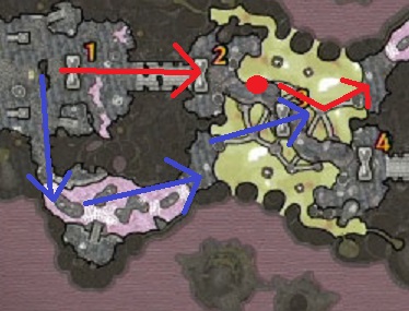 2or4番塔前から落下して下層に降りれば良い。